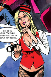 In 1969, a young woman looking to make a living stepped into The Broadway Theater to apply for the job opening of Usherette. Getting the job turned out to be more than she bargained for. At a typical Saturday matinee, Velvet entered the projectionist booth to investigate a problem, only to be stabbed and electrocuted by the monstrous Mr. Wallen. Her burning body tumbled out of the booth onto the screen, thought to be part of the show. Velvet did not die, however. She rose, craving the flesh of the living, doomed to work the Broadway for eternity.