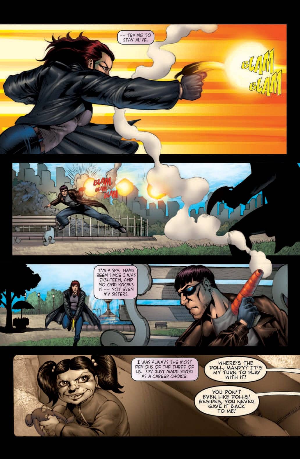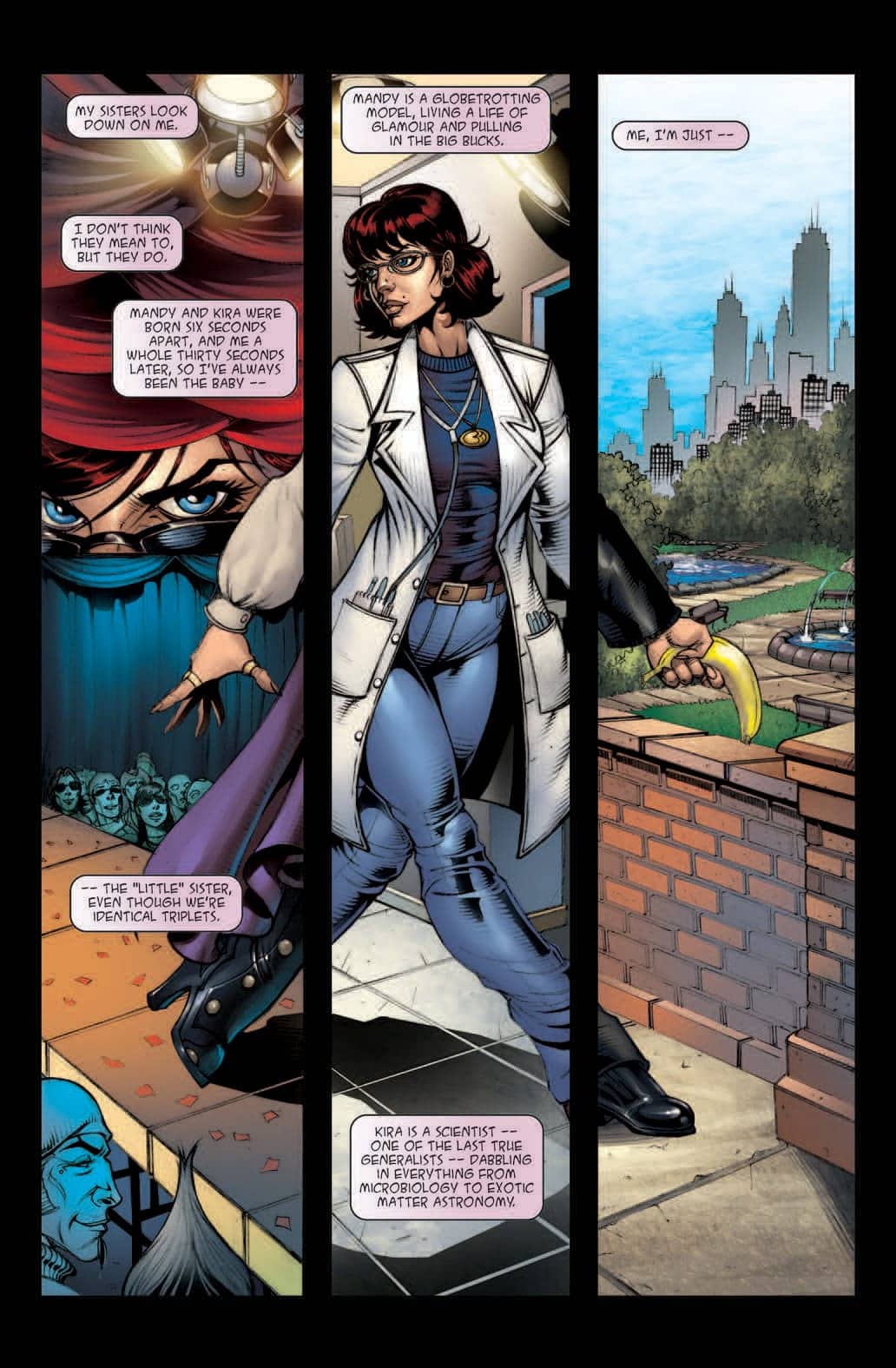 Covert operative Claire Chartrand has a dozen guns pointed at her — and that’s the least of her worries The same betrayal that lands her in an impossible situation during a critical mission also reveals Claire’s true occupation to her two identical sisters — a scientist and a model — who now discover that the company Claire works for is partially responsible for the professional success they thought they’d earned on their own. 3 tells the story of three identical looking but very different women who nearly lose each other, only to discover that, with their relationships stretched to their limits, they can each emerge triumphant by sticking together and finding a new way to work as a team.