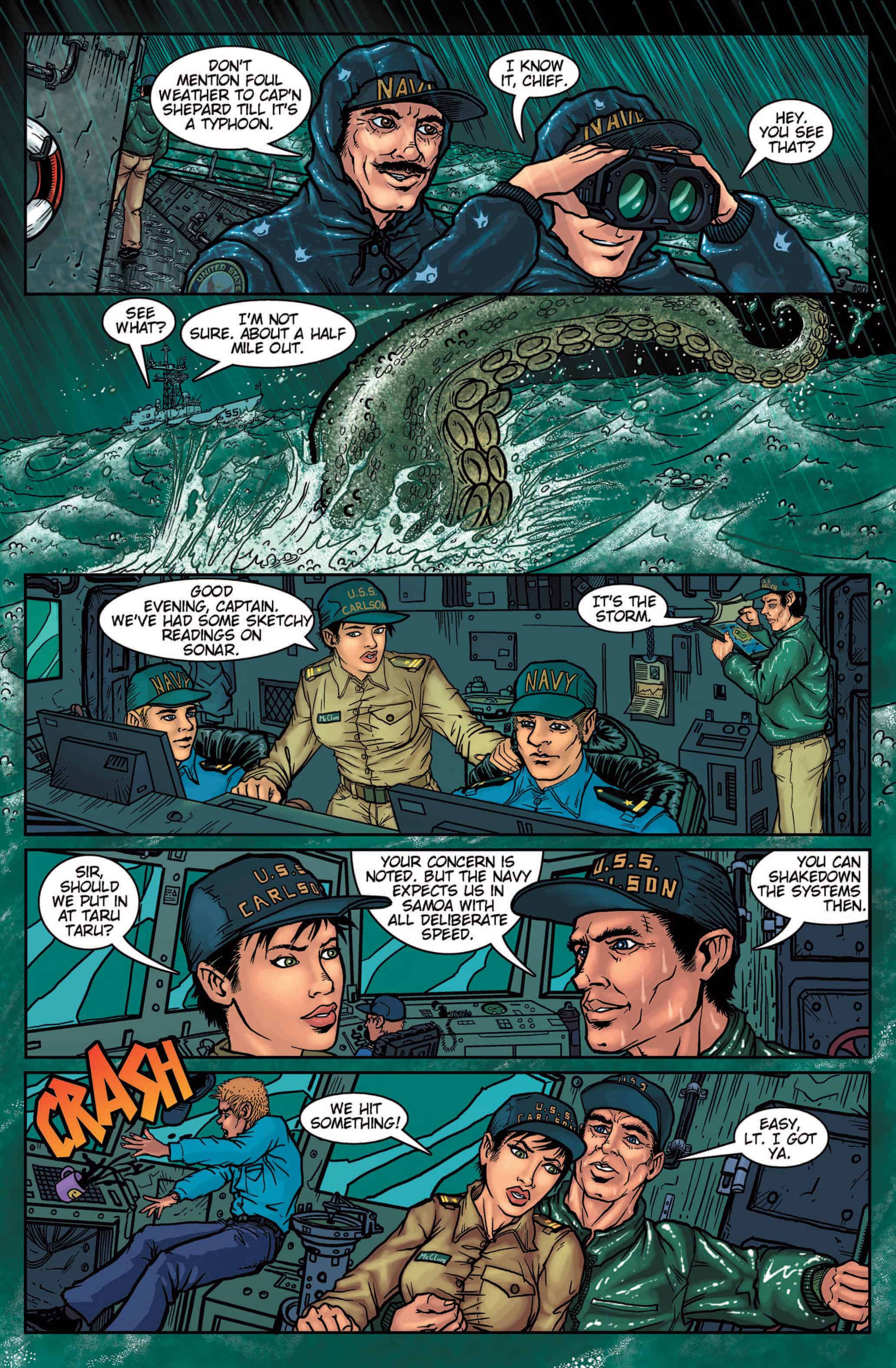 In the 1950s, the U.S. Navy encountered and destroyed a gigantic octopus that attacked shipping and wreaked havoc on the west coast of the United States. American forces killed the creature and ended the threat once and for all. Or so they thought. They were wrong. Now, another monster is rising in the warm blue waters surrounding Taru Taru, a speck of land far out in the Pacific. And this time it’s worse than anyone ever imagined.